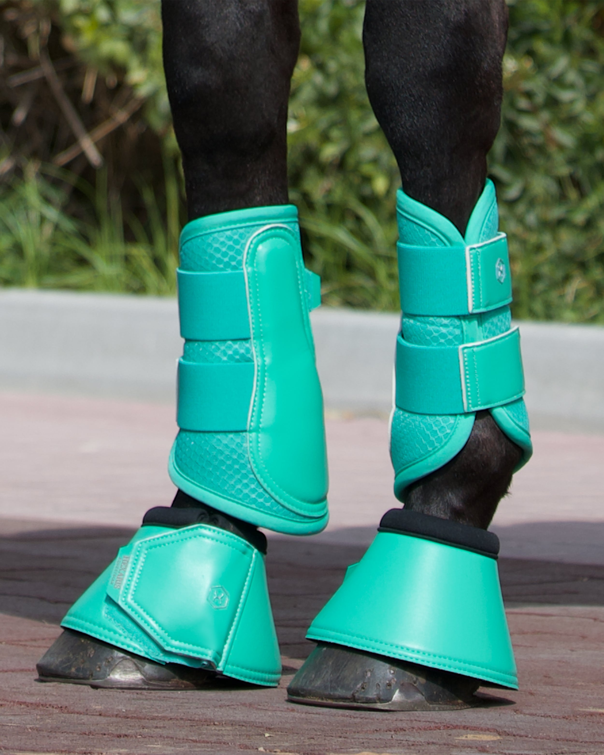 The Paradiso Mesh Horse Brushing Boots in Sea Turquoise offer excellent shock absorption while remaining highly breathable, thanks to the perforated neoprene lining and 3D mesh outer layer. We have minimized unnecessary layers to enhance airflow and ensure quick-drying functionality, flexibility and lightweight comfort.