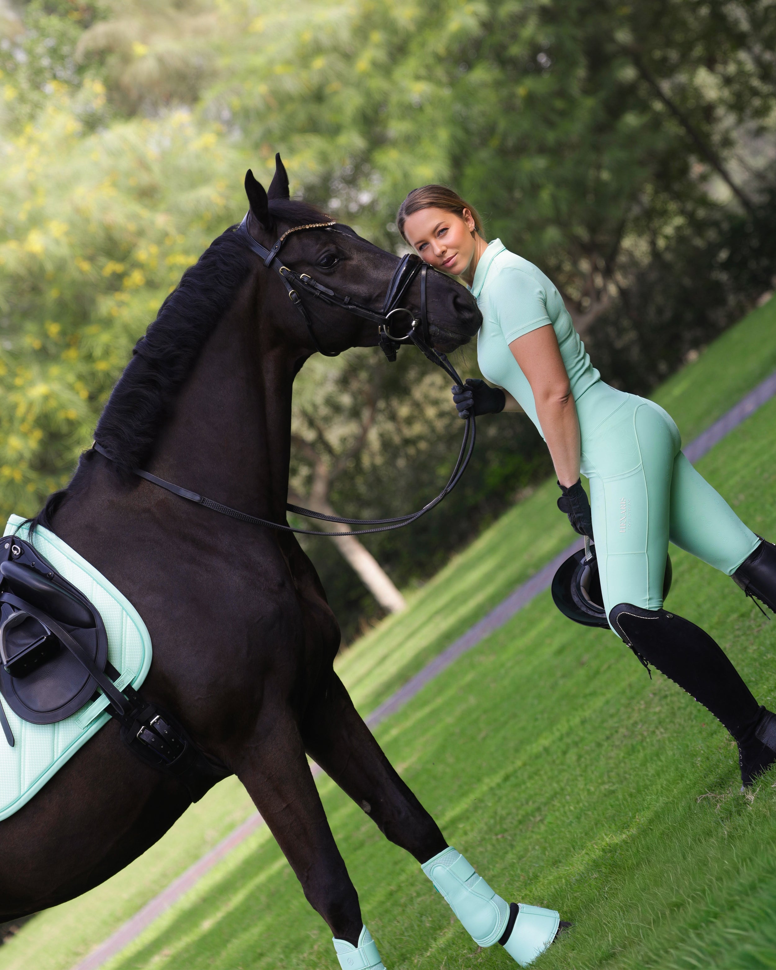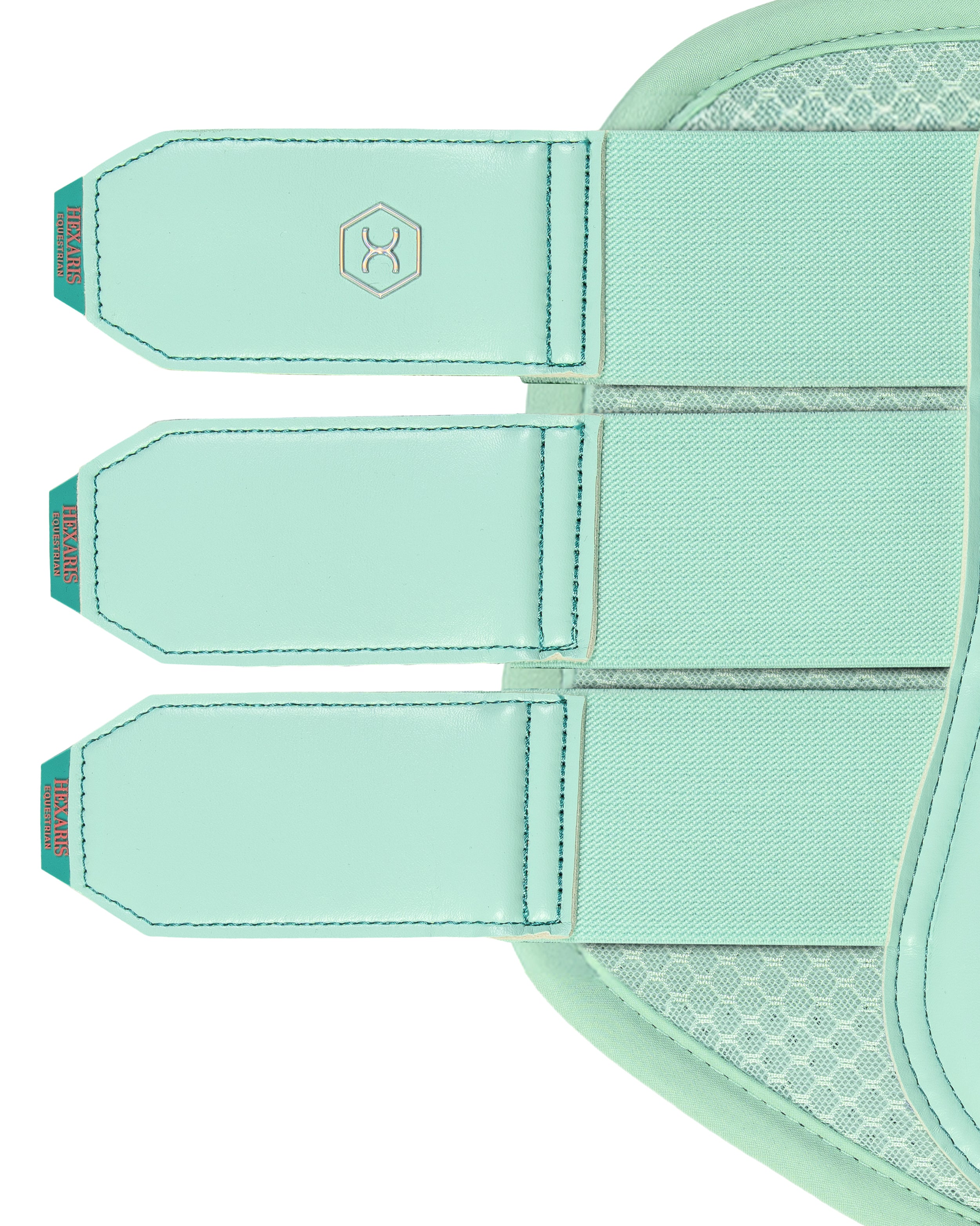 The Paradiso Mesh Horse Brushing Boots in Bay Mint offer excellent shock absorption while remaining highly breathable, thanks to the perforated neoprene lining and 3D mesh outer layer. We have minimized unnecessary layers to enhance airflow and ensure quick-drying functionality, flexibility and lightweight comfort.