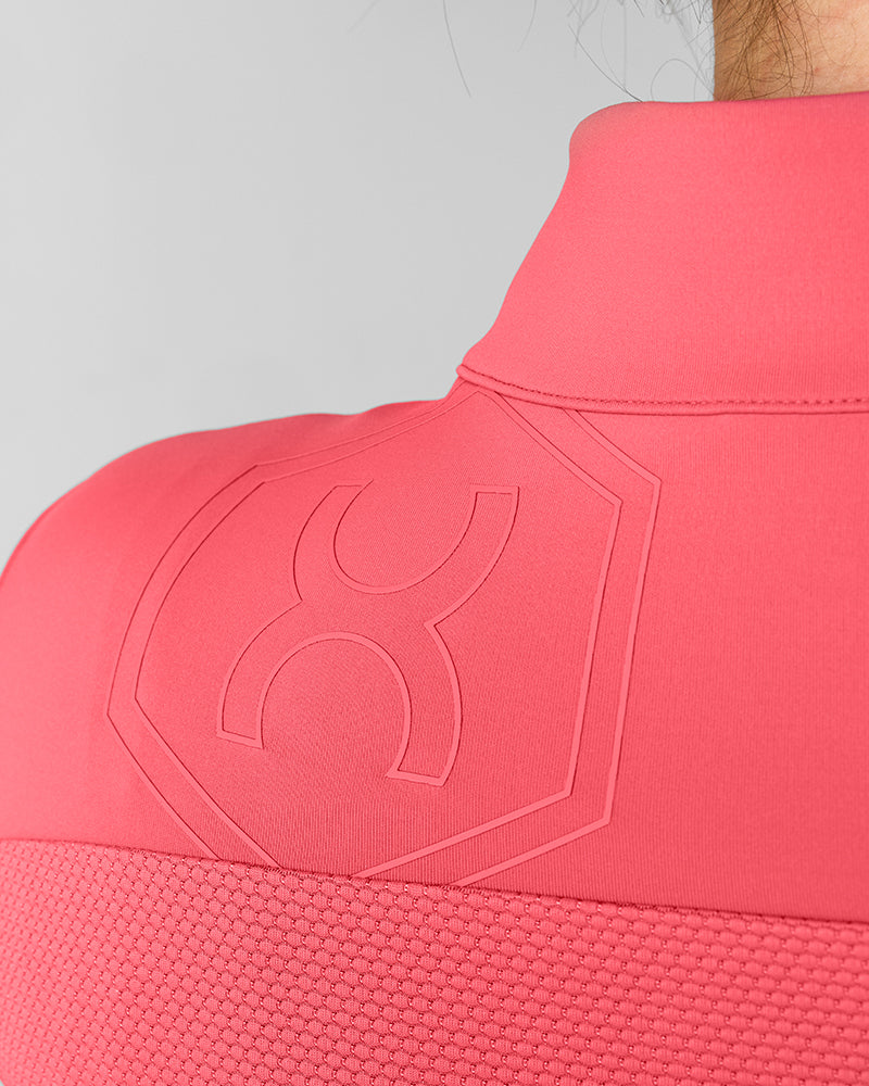 The Palm Summer Jacket in Hot Coral is perfect for riders during chilly days. Designed with a flattering, form-fitting cut, this lightweight women's jacket is made from elastic technical fabric with extra-stretch side and back panels for enhanced freedom of movement.
