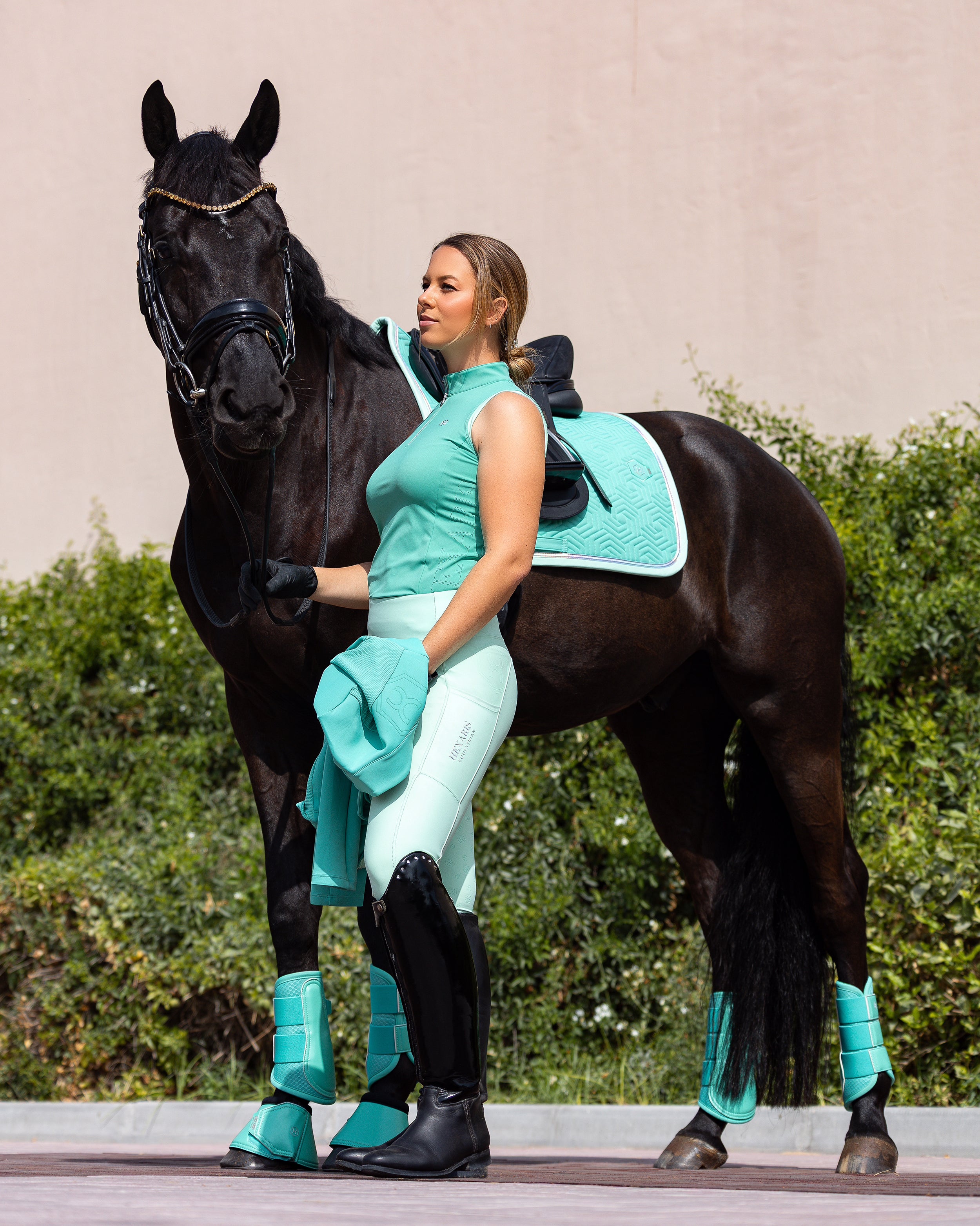 The Paradiso horse Bell Boots in Sea Turquoise perfectly complete your summer set. These overreach boots feature our signature closure shape and are designed for everyday protection. With a shock-absorbing neoprene lining and synthetic leather outer layer, they provide exceptional protection while remaining flexible, lightweight, and comfortable.