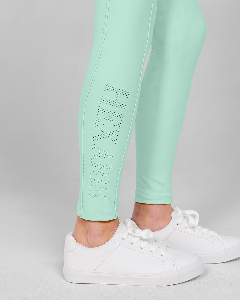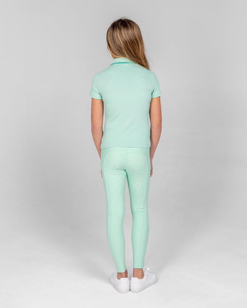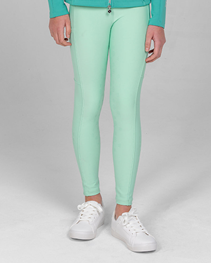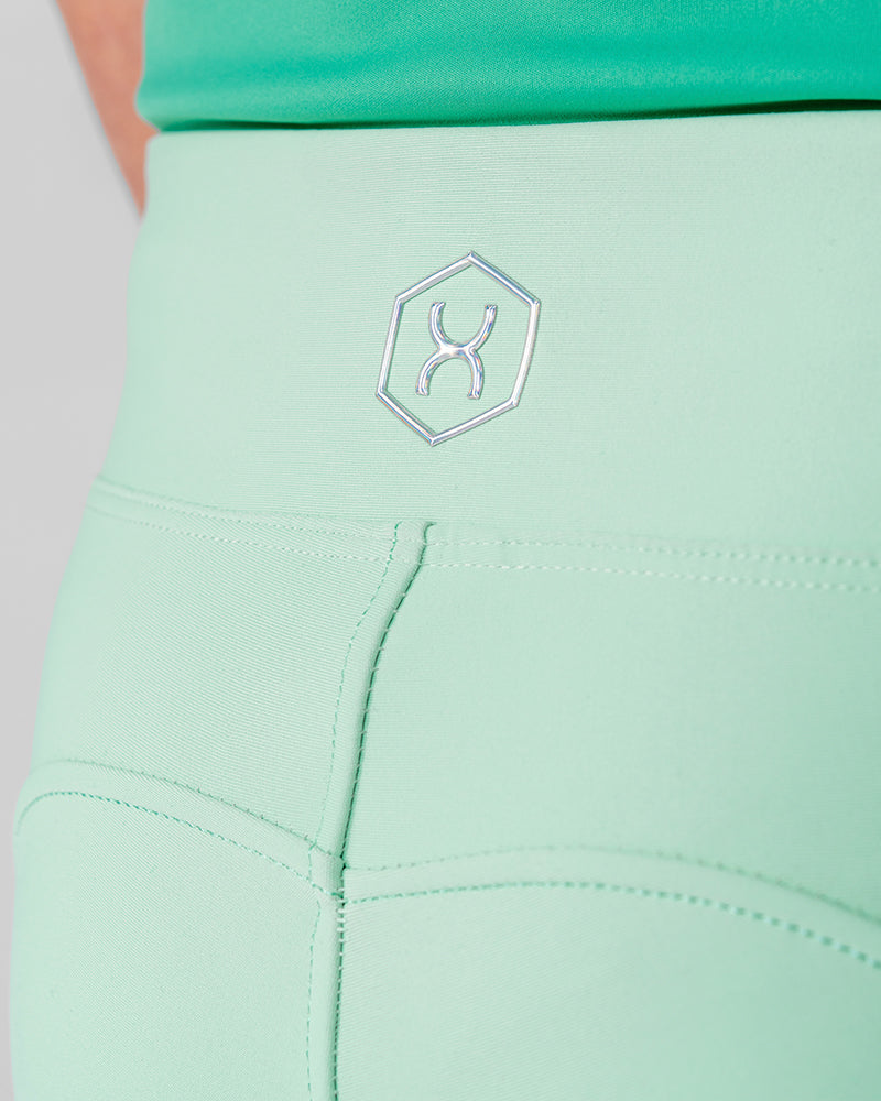 The Wave Kids Riding Leggings in Bay Mint are designed for riders who prioritize comfort and performance. Made from stretchy fabric that feels like a second skin, these kids riding leggings provide supportive compression while the reinforced elastic waistband prevents sagging. Laser-cut ventilation areas on the calves help improve airflow, keeping riders comfortable throughout the day.